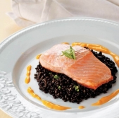 Losos in črna leča s smetanovo omako