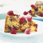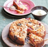 Limonova sirčkova torta s pečenimi slivami in robidnicami