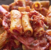 Testenine v kremni paradižnikovi omaki s hrustljavim pršutom