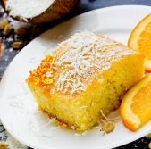 Zdrobovo pecivo s kokosom in pomarančnim sirupom