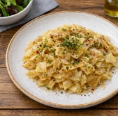 Testenine v kremni paradižnikovi omaki s hrustljavim pršutom
