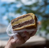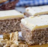 Pecivo z orehovim biskvitom in vanilijevim pudingom