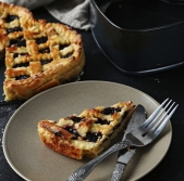 Zavitek z gozdnimi sadeži (malinami, borovnicami, robidami) in čokolešnikom