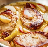 Svinjski kotleti v čebulni omaki z jabolki