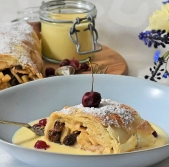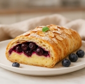Zavitek z gozdnimi sadeži (malinami, borovnicami, robidami) in čokolešnikom