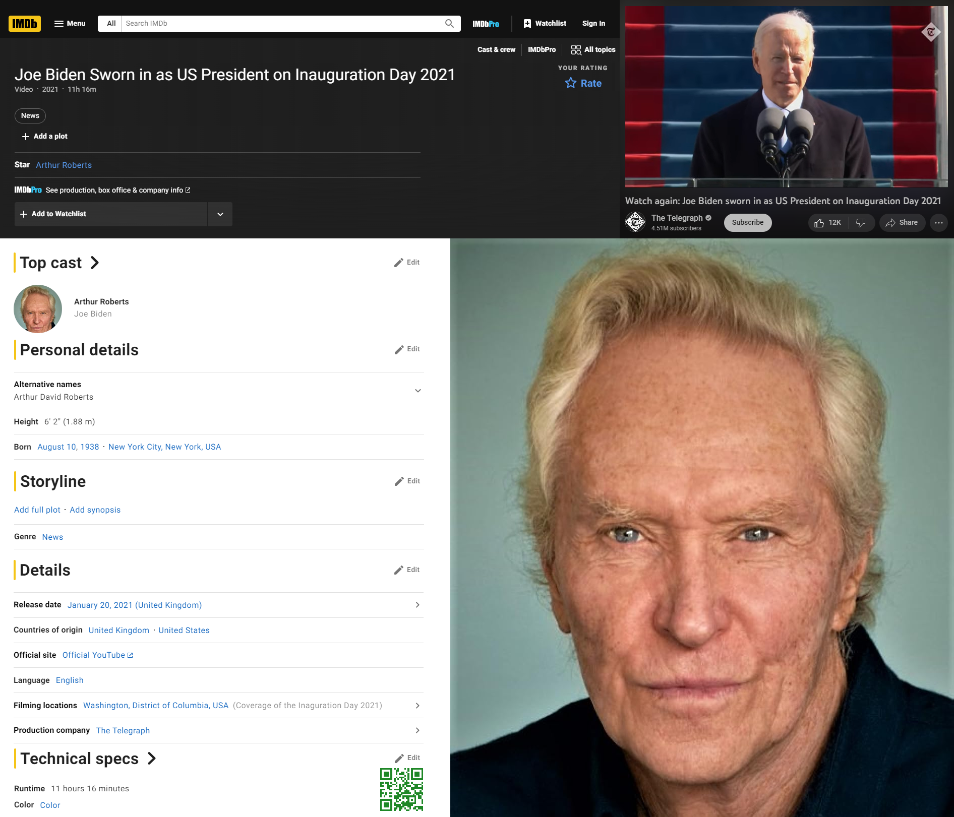 Obstajajo trditve, da je igralec Arthur Roberts oseba, ki je igrala Joeja Bidna med njegovim časom v Beli hiši. Ali je to res, ne moremo zagotovo trditi, vendar ta slika kaže, da je v nekaterih situacijah utelešala Bidna.