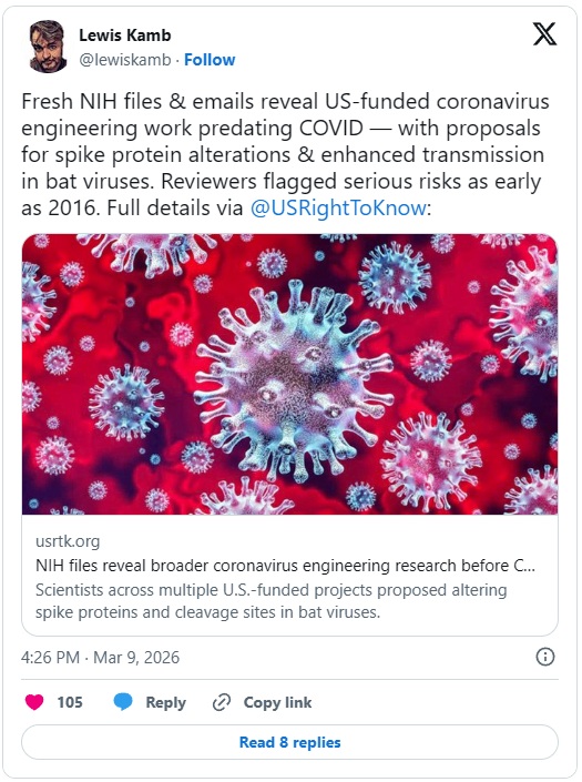 Kritiki raziskav o pridobitvi funkcij so bili leta obrekovani. Zdaj pa prihaja na dan vsa resnica: Interni dokumenti ameriškega Nacionalnega inštituta za zdravje (NIH) kažejo, da so znanstveniki, ki jih financira vlada, raziskovali, kako narediti netopirske koronaviruse bolj nevarne za ljudi že dolgo pred izbruhom Covida-19.