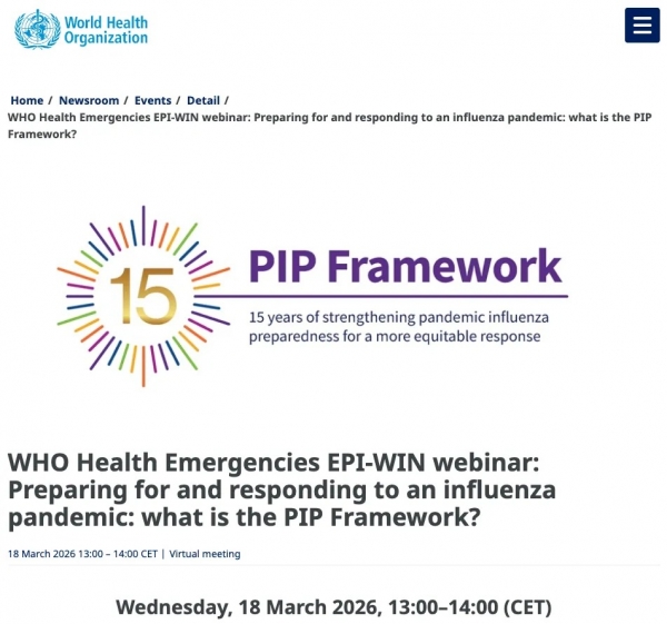Svetovna zdravstvena organizacija bo v sredo, 18. marca, sklicala mednarodni spletni sestanek o nadzoru pandemije, ki se bo po sporočilu za javnost SZO osredotočil na "Okvir pripravljenosti na pandemično gripo (PIP)" neizvoljene globalistične skupine.