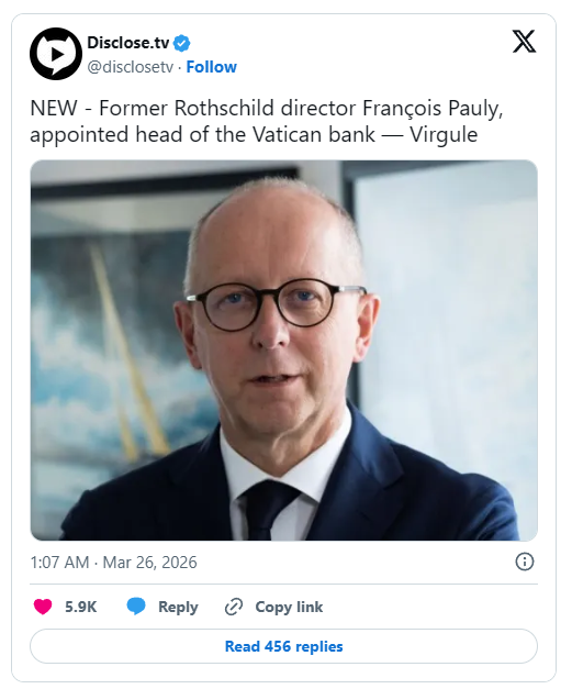 Nekdanji direktor Rothschilda François Pauly imenovan za vodjo vatikanske banke – Virgule